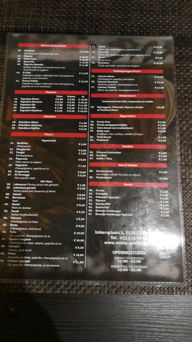 The menu at Grillroom Pizzeria Midas in Apeldoorn offers a delightful selection of dishes that cater to a variety of tastes. One of the standout offerings is the Pizza Quattro Stagioni, a classic choice for pizza lovers. This pizza combines four distinct flavors, making it a perfect choice for those who want to experience a little bit of everything. The quality of the ingredients and the perfect balance of toppings make it a must-try. For those craving something different, the Pizza Frutti di Mare stands out with its rich seafood topping, perfect for seafood enthusiasts.